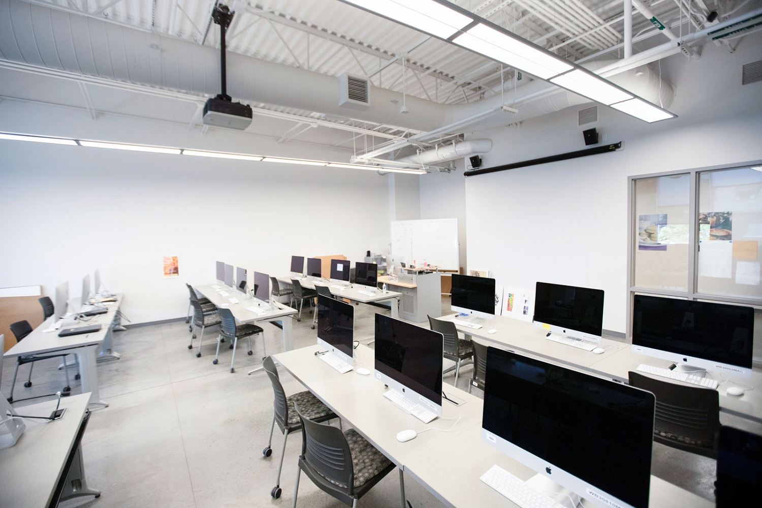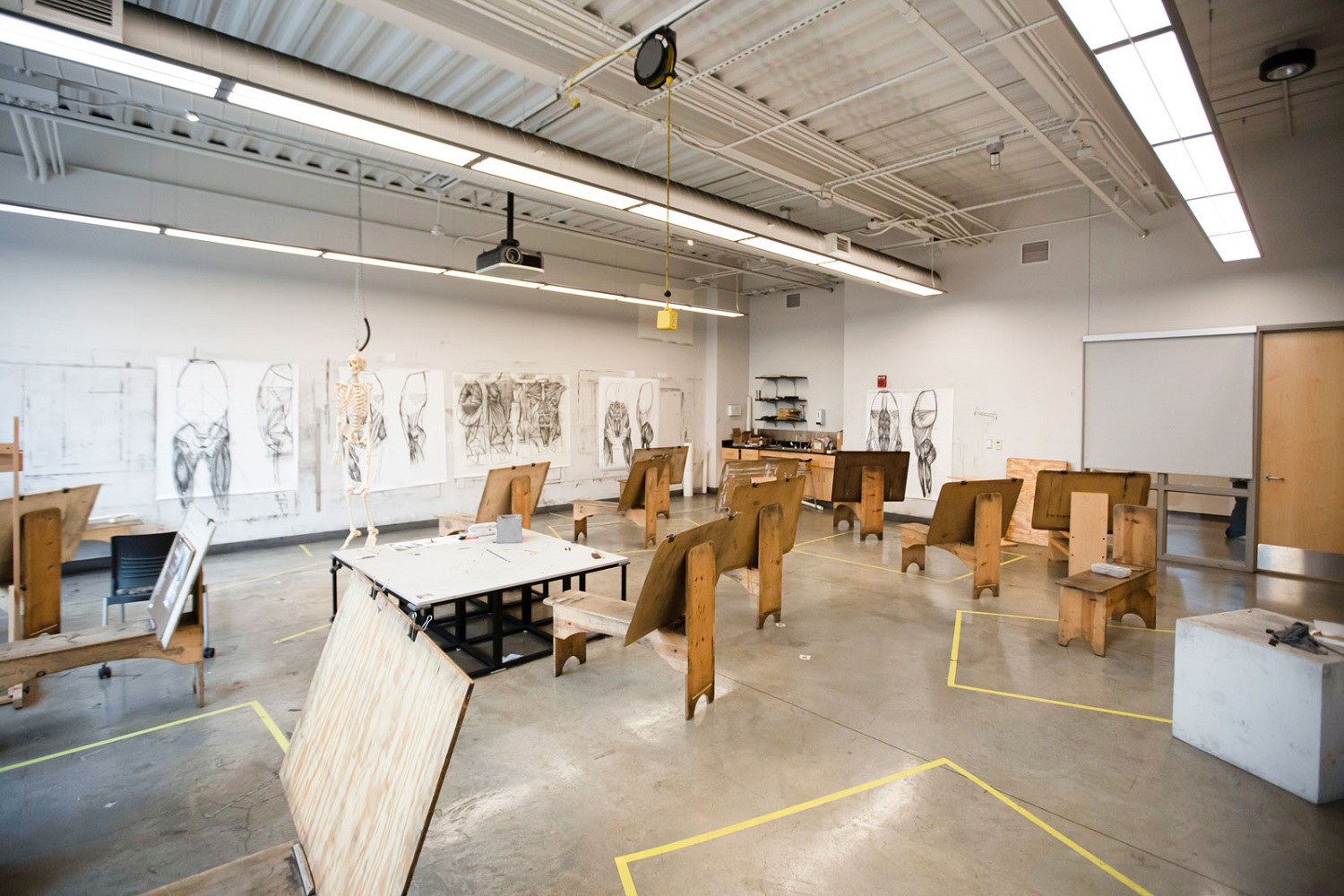 Open spaces such as the student lounge, senior studios, and the inspiration staircase provide excellent student collaboration and creativity areas.