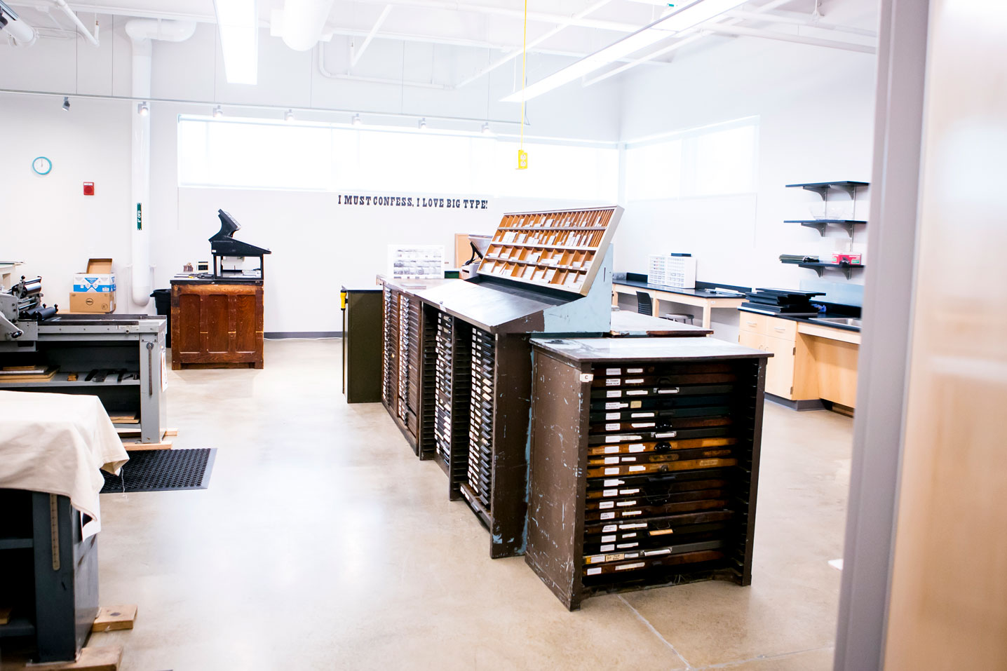 The Windgate building encompasses 57,000-square-feet and is home to the university’s Book Arts, Studio Art, and Graphic Design programs. It houses spaces for photography, painting, sculpture, and art history, computer labs, a wood shop, a letterpress and bookmaking operation, a photography studio, critique spaces, a 120-seat theatre, and the UAFS Gallery of Art and Design.